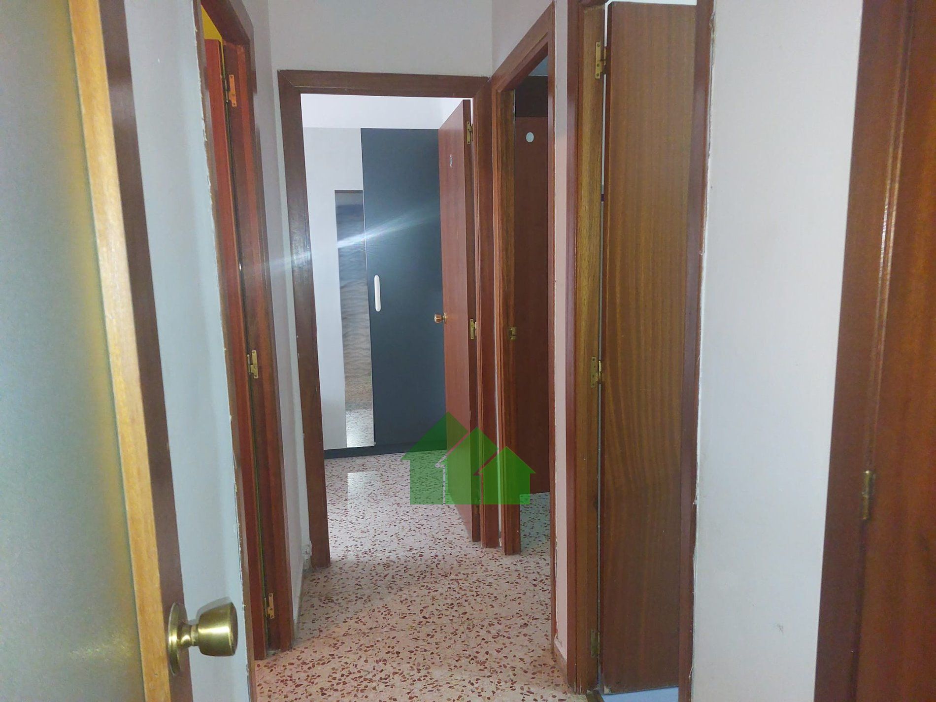 El piso dispone de suelo de terrazo, carpintería exterior de aluminio, carpinteria interior de madera, portero automático. También tiene conexión a gas ciudad.