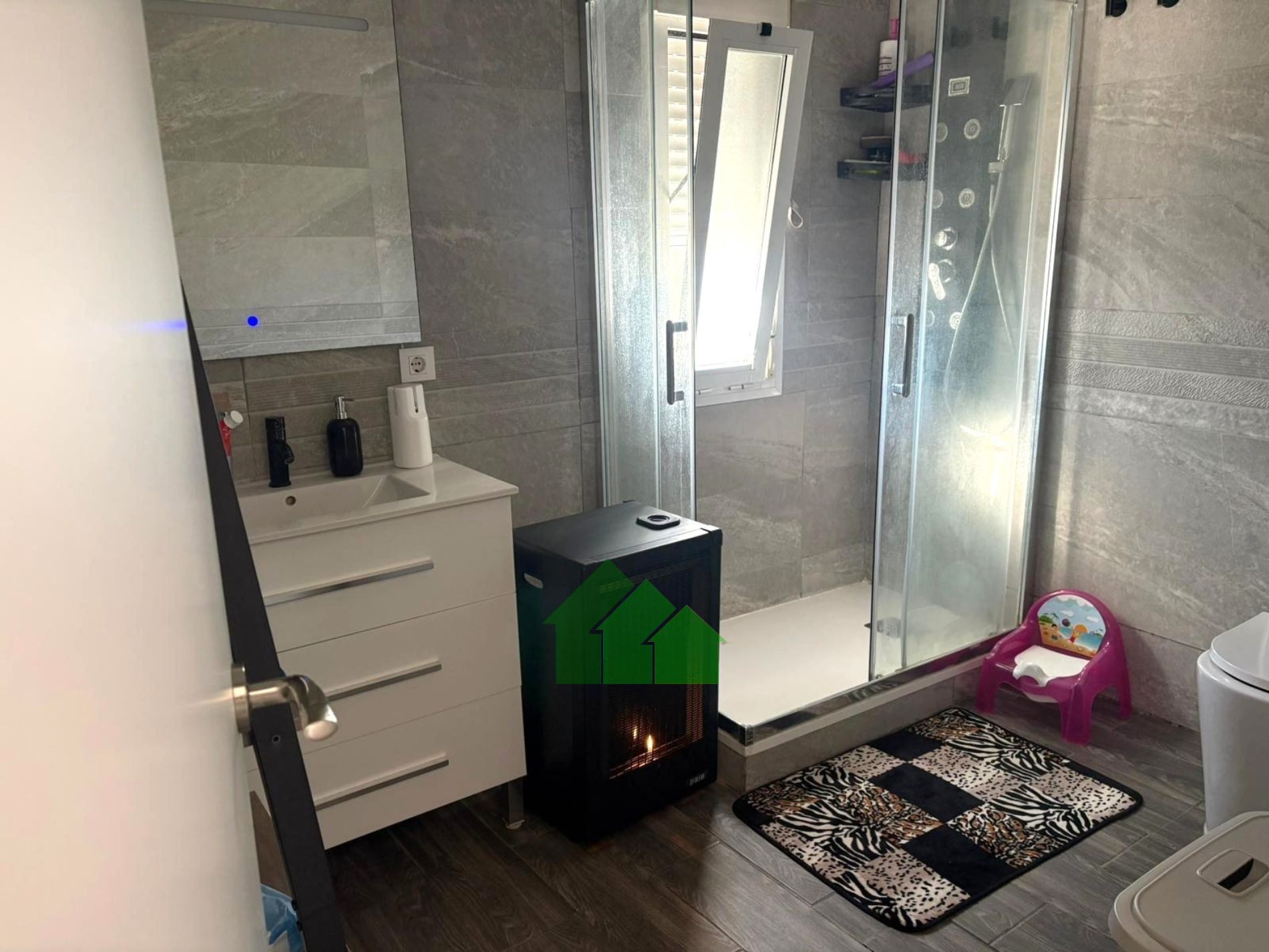 DISTRIBUCIÓN DE LA CASA: Salón comedor-cocina con aire acondicionado calor/frio, dos habitaciones y cuarto de baño ducha hidromasaje con mampara.